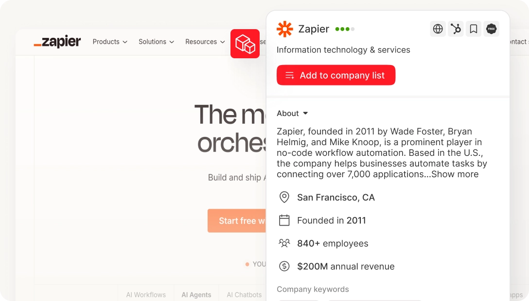 It's built to plug into your B2B sales stack so you can move quickly from discovery to outreach.